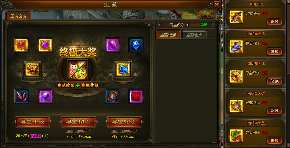 1:消耗藏宝图道具或者元宝抽取珍稀道具